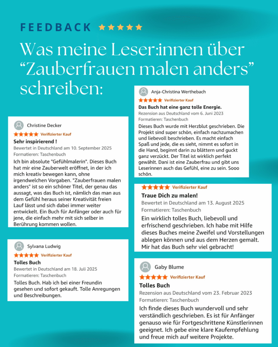 „Zauberfrauen malen anders“ bietet dir auf inspirierende und liebevolle Weise einen Schlüssel zu deiner inneren Kreativität.