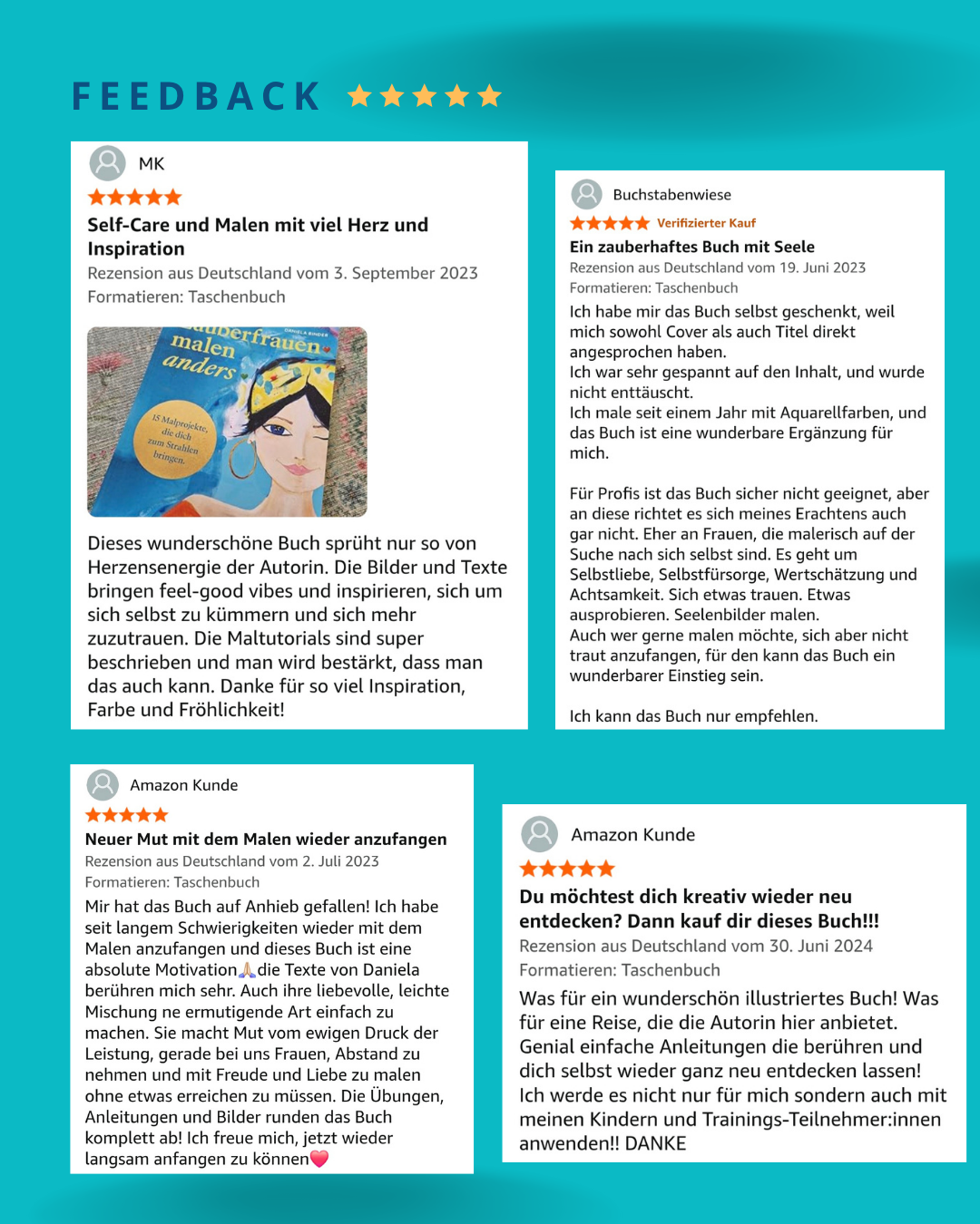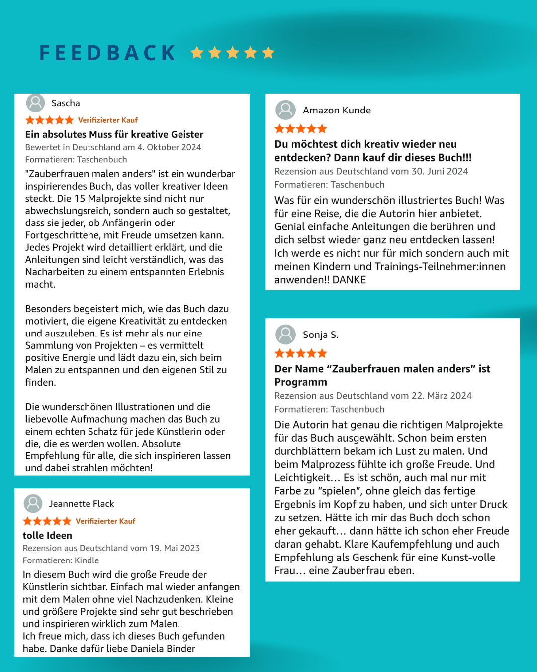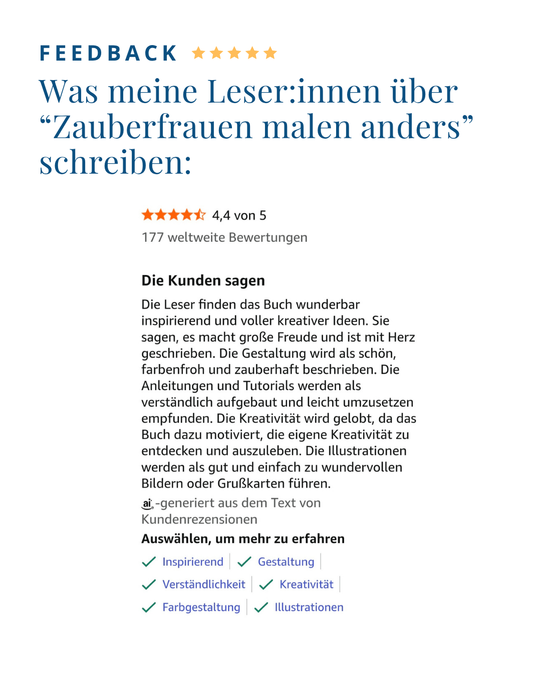 „Zauberfrauen malen anders“ bietet dir auf inspirierende und liebevolle Weise einen Schlüssel zu deiner inneren Kreativität.