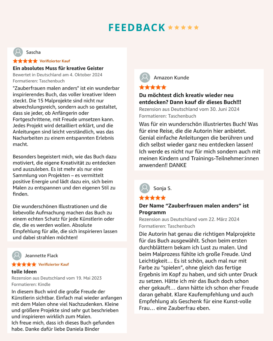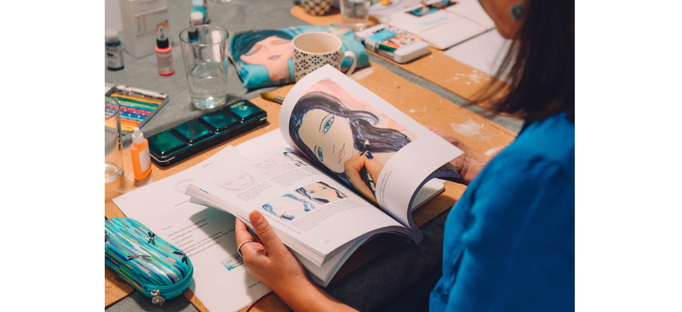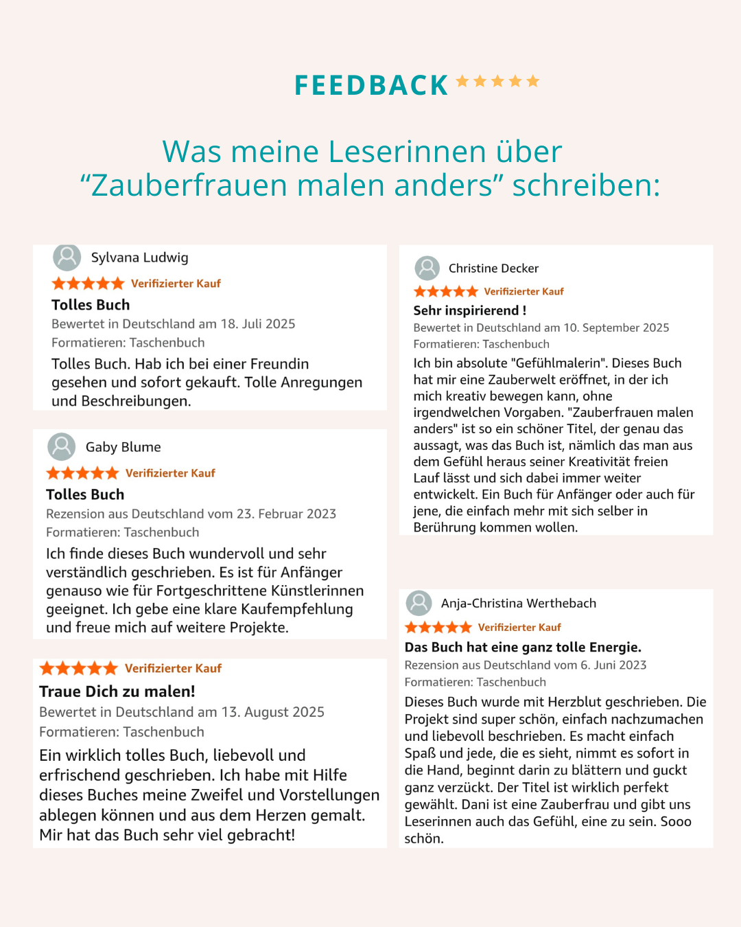 Dieses Buch begleitet Frauen seit 2022. Über 3600 Mal hat es seinen Weg bereits in kreative Hände gefunden. Für viele war es der Anfang zum regelmäßigen Malen.